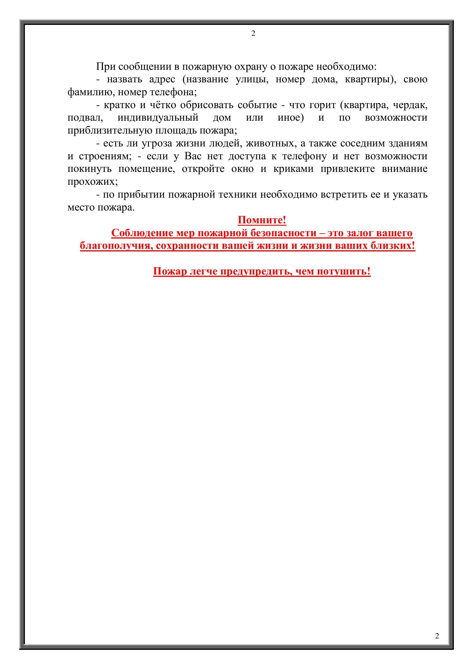 Памятки по пожарной безопасности